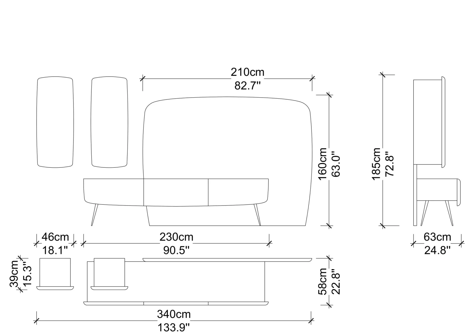 TV Panel - W:209cm H:160cm D:4,8cm.