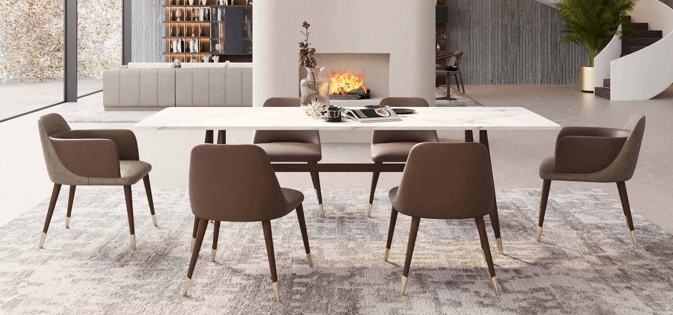 Bring the family together with this dining table and its matching chairs. It's stunningly slim marble top is unique and will instantly give your dining space a graceful look.