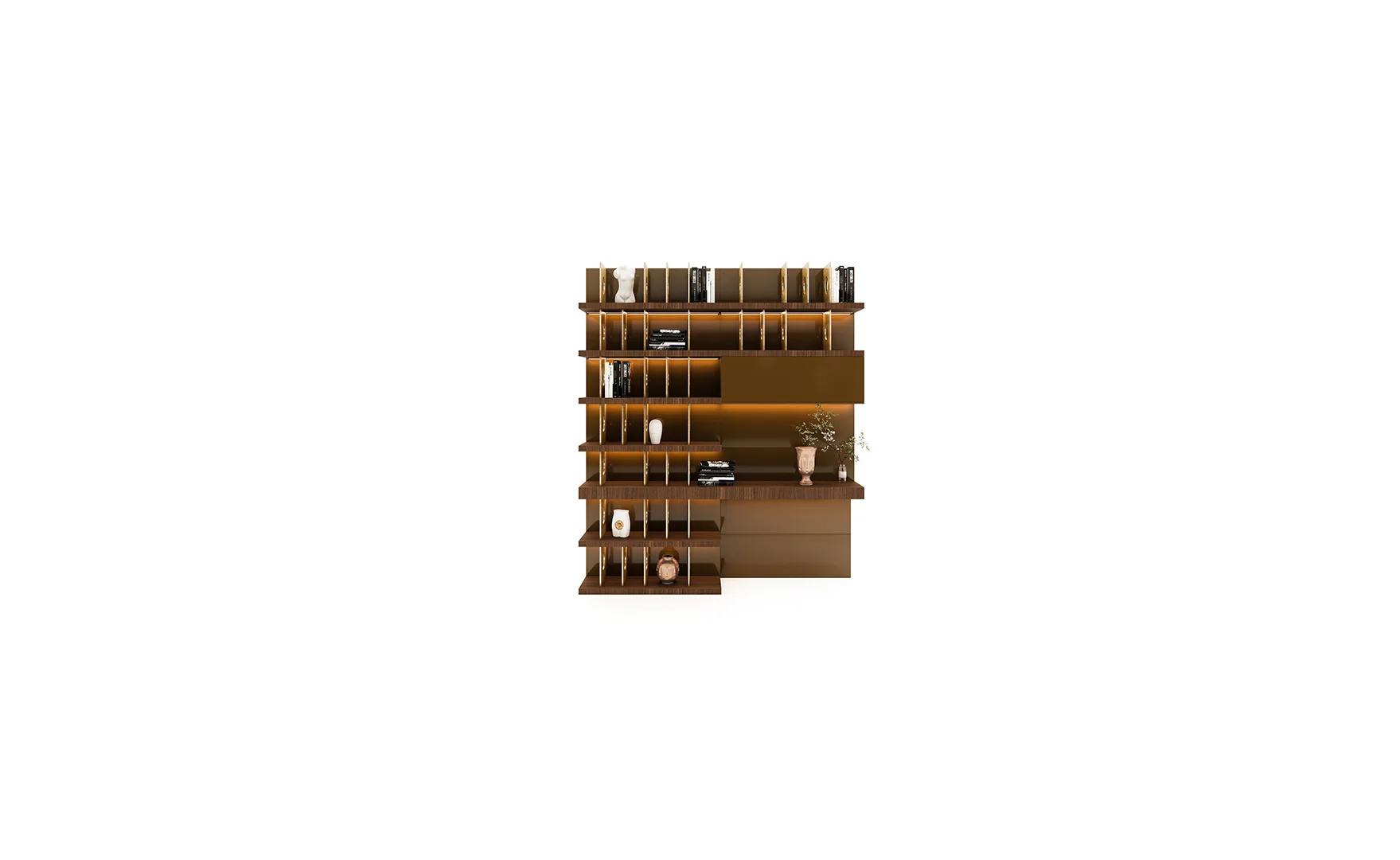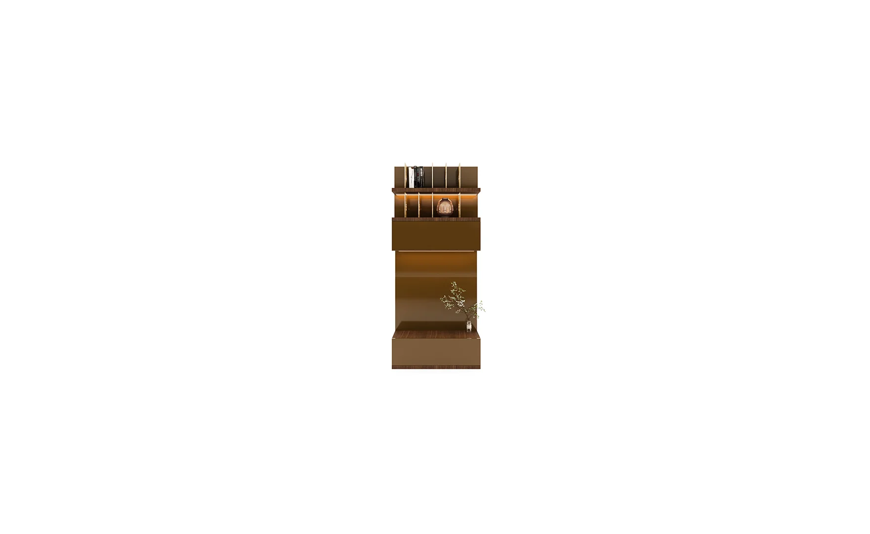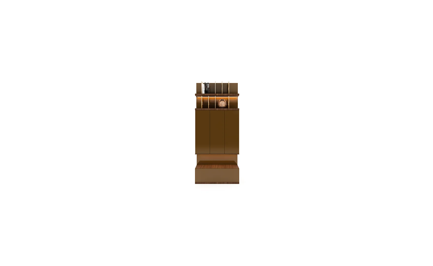 Designed with beautiful clean lines, metal details and lots of storage. It has shelving with rear outlet holes and drawers. The walnut finish was also chosen for its intricate woodgrain. The whole unit is just a marvelous piece of art.