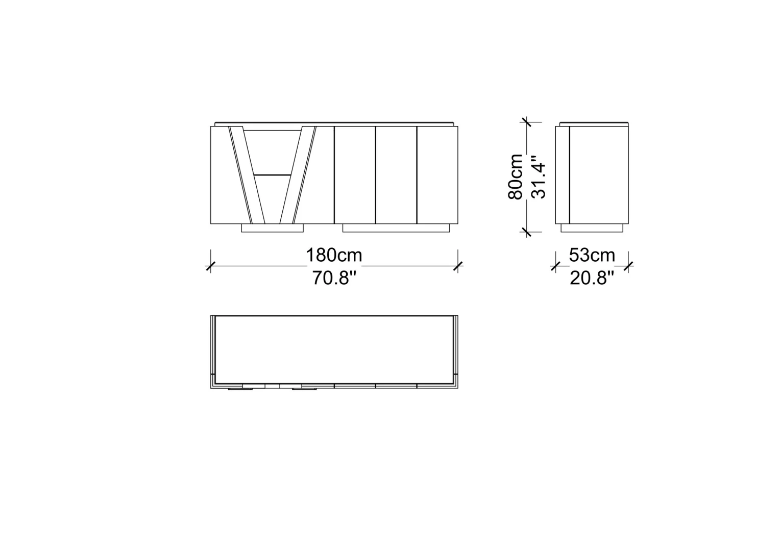 Shaped by modern lines, its design draws attention while the distinctive door detailing delivers timeless elegance. With generous storage capacity, it completes order with refinement and adds a confident presence to living spaces.