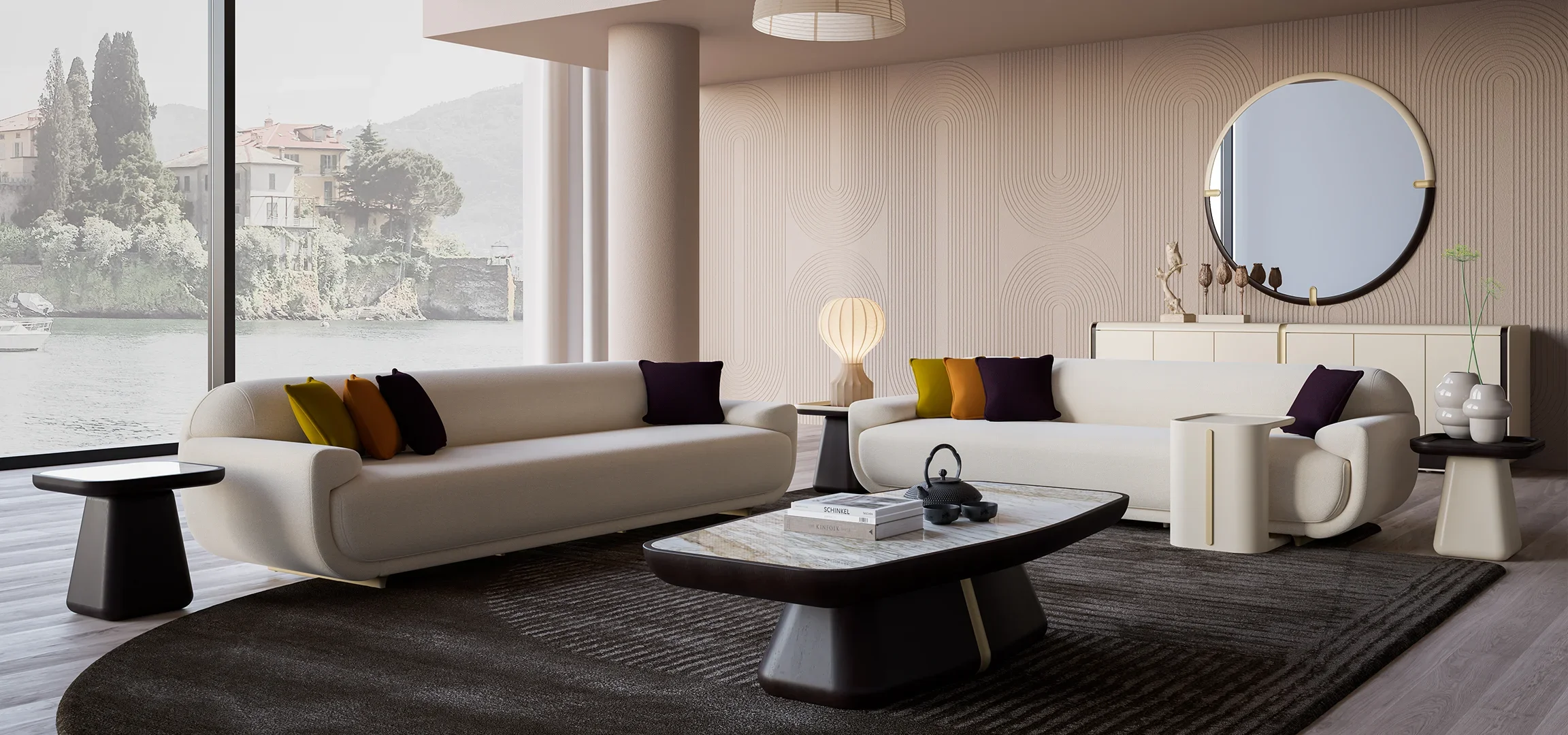 Feel the power of aesthetic details with Rita living room. Reflect the indispensable aura of modern design into your living room.