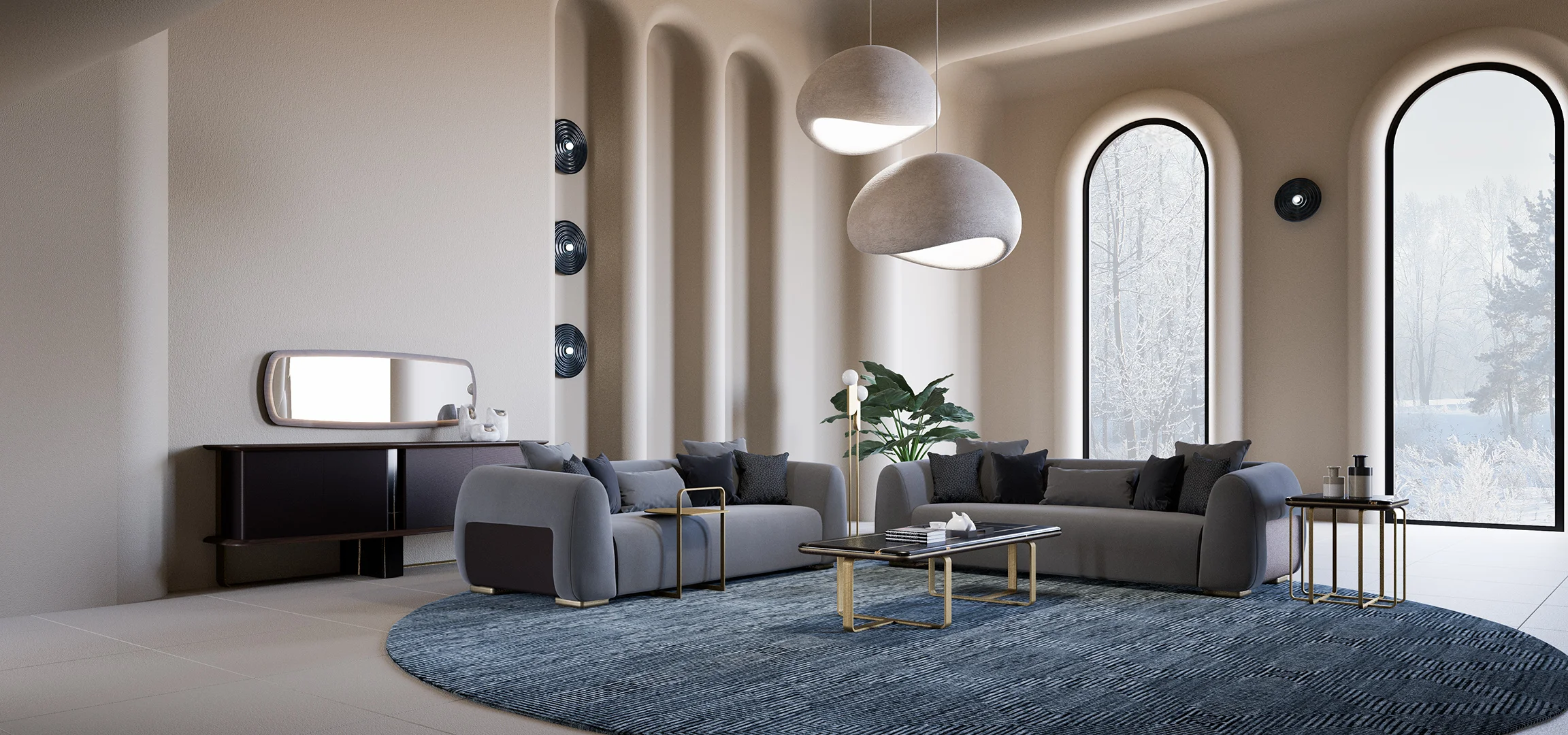 İddialı ve rafine bir çizgi… Amber Koleksiyon’un kumaş ve mermer kalitesi doğal ahşabın hâkimiyetini uyum içinde yansıtırken metalin mat görünümü ile evinizin aurası değişiyor.